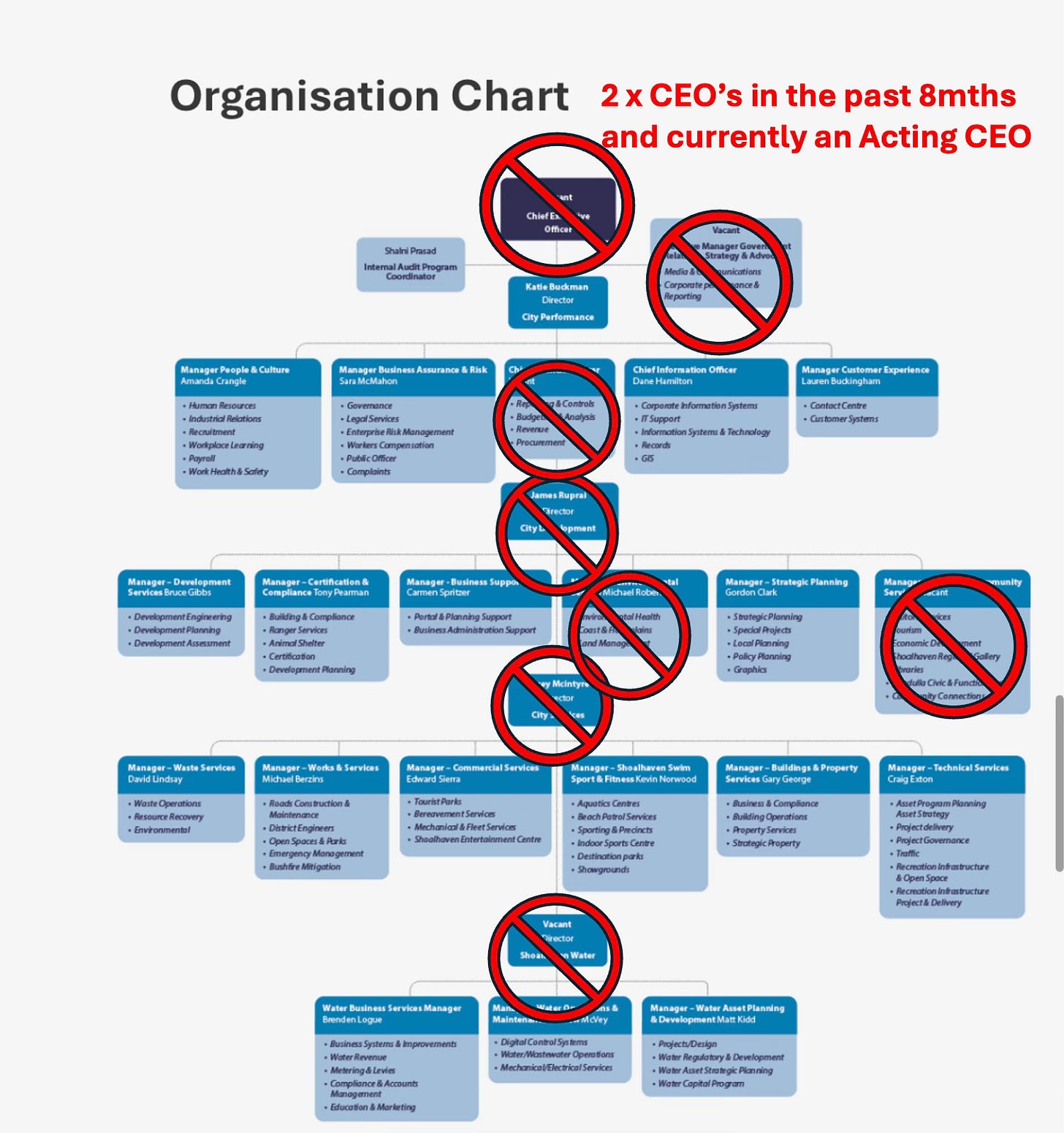 Well that is working out well here in the Shoalhaven - CEO number 3 in one year and look at the org chart - yep a model of well run local government :).